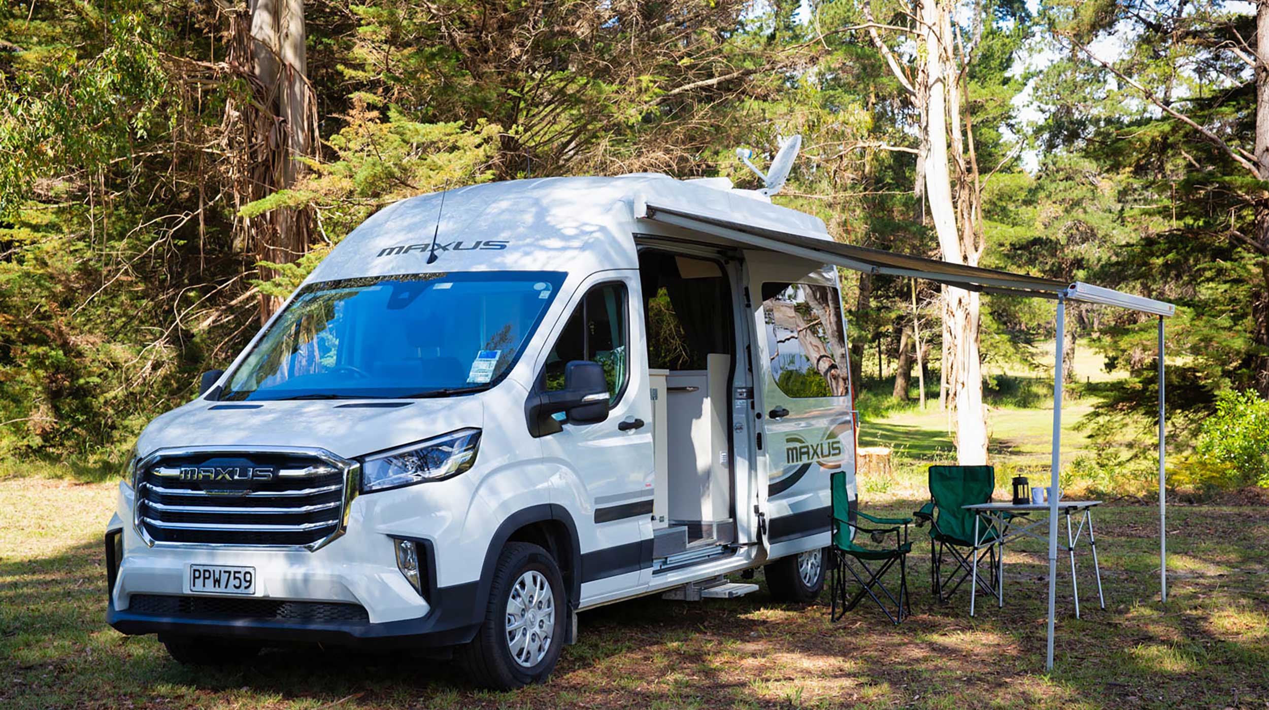 Every hire comes with a roll-out sun awning, creating the perfect spot to relax outdoors and soak in the beautiful New Zealand scenery.