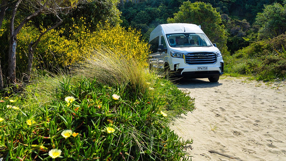 Every hire comes with a roll-out sun awning, creating the perfect spot to relax outdoors and soak in the beautiful New Zealand scenery.